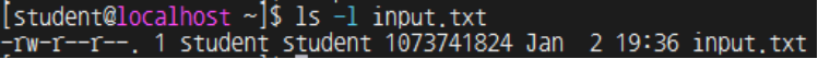 /dev/zero 에서 1GB 의 데이터를 읽어와 /home/student/input.txt 에 씀