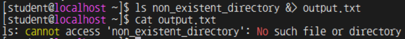 존재하지 않는 디렉토리를 조회해 발생한 오류를 output.txt 에 저장