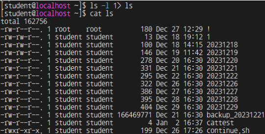 Ls -l 의 표준에러를 파일로 재지정
