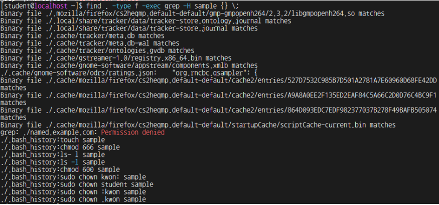 Grep 명령어로 현재 및 하위 디렉토리에서 sample 문자열이 포함된 라인 탐색