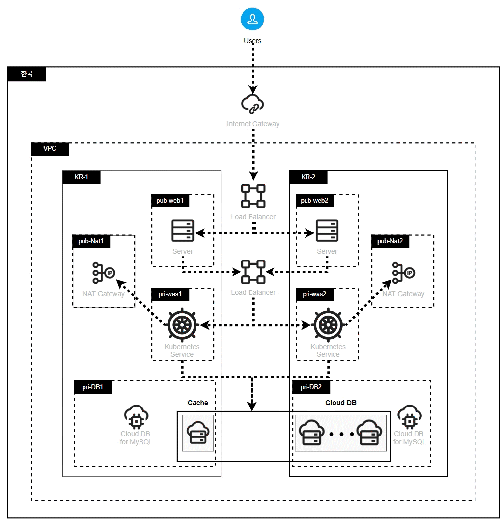 최종적으로 완성된 아키텍처입니다. 기본적이지만 탄탄한 3tier 아키텍처를 구축해 고가용성을 유지,
