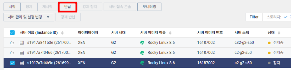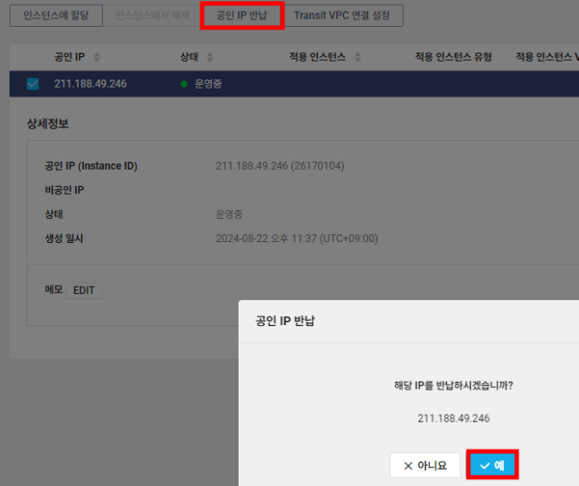 생성했던 서버는 반드시 반납 버튼을 눌러 제거해주시고, 사용한 공인 ip를 반납했는지 다시 한 번 확인하시길 바랍니다.