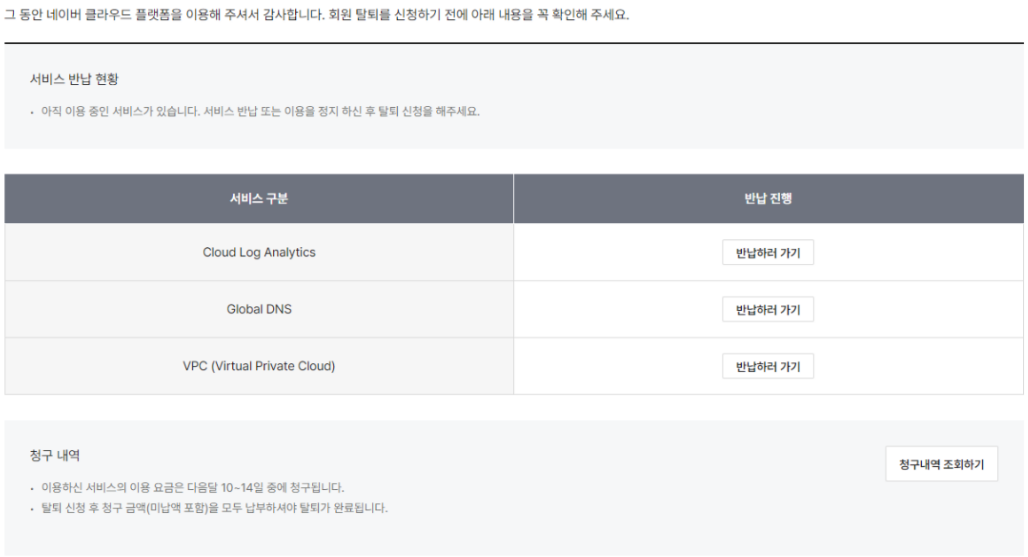 모든 리소스를 정리하고도 불안하실 때에는 회원 탈퇴창을 확인해보시면 아직 남아있는 리소스가 있는지 확인할 수 있습니다.(실제로 탈퇴하시면 안됩니다.)