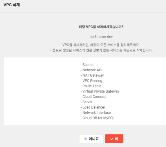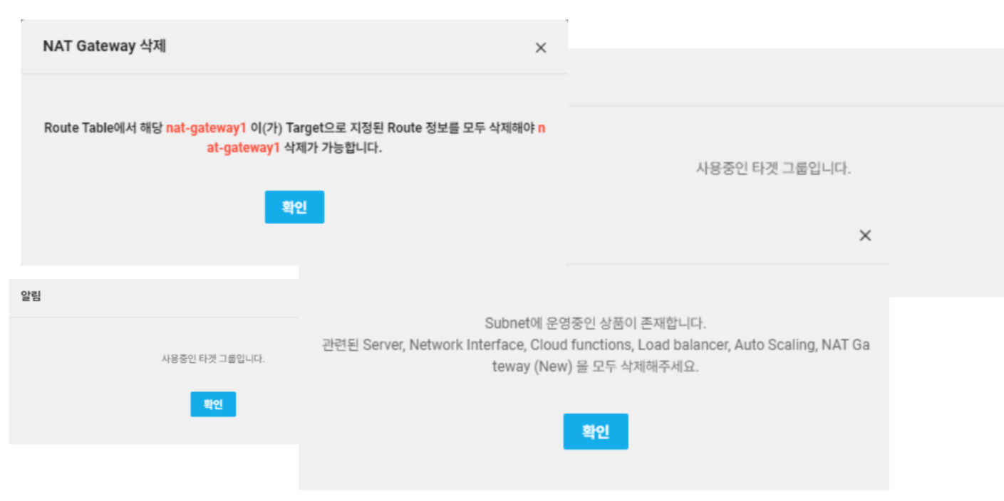 - 리소스 삭제 시에는 구성 시의 순서(종속성)등을 고려하여 차근차근 삭제해야 합니다.