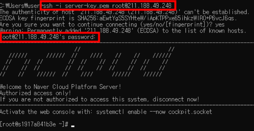 ssh -i <키파일 경로> root@<관리자 비밀번호>