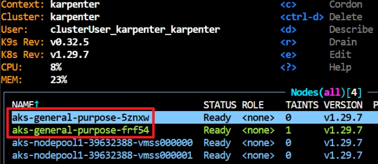 karpenter-5cf5cc5d5b-k5f9q 1/1 Running 0 2m10s