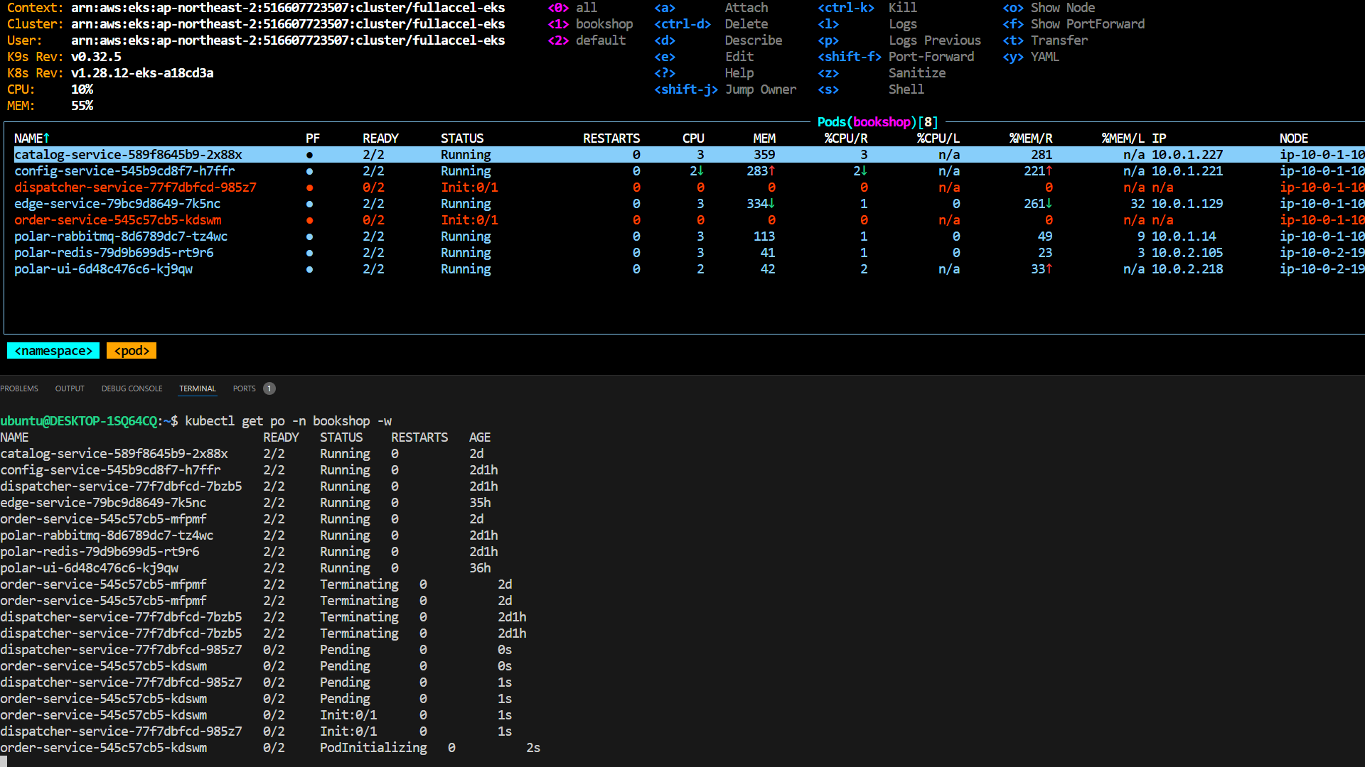 Dashboard에서 장애 주입시 위와 같이 이벤트가 실행중인 task, 실제 쿠버네티스 환경에서 사용 가능한